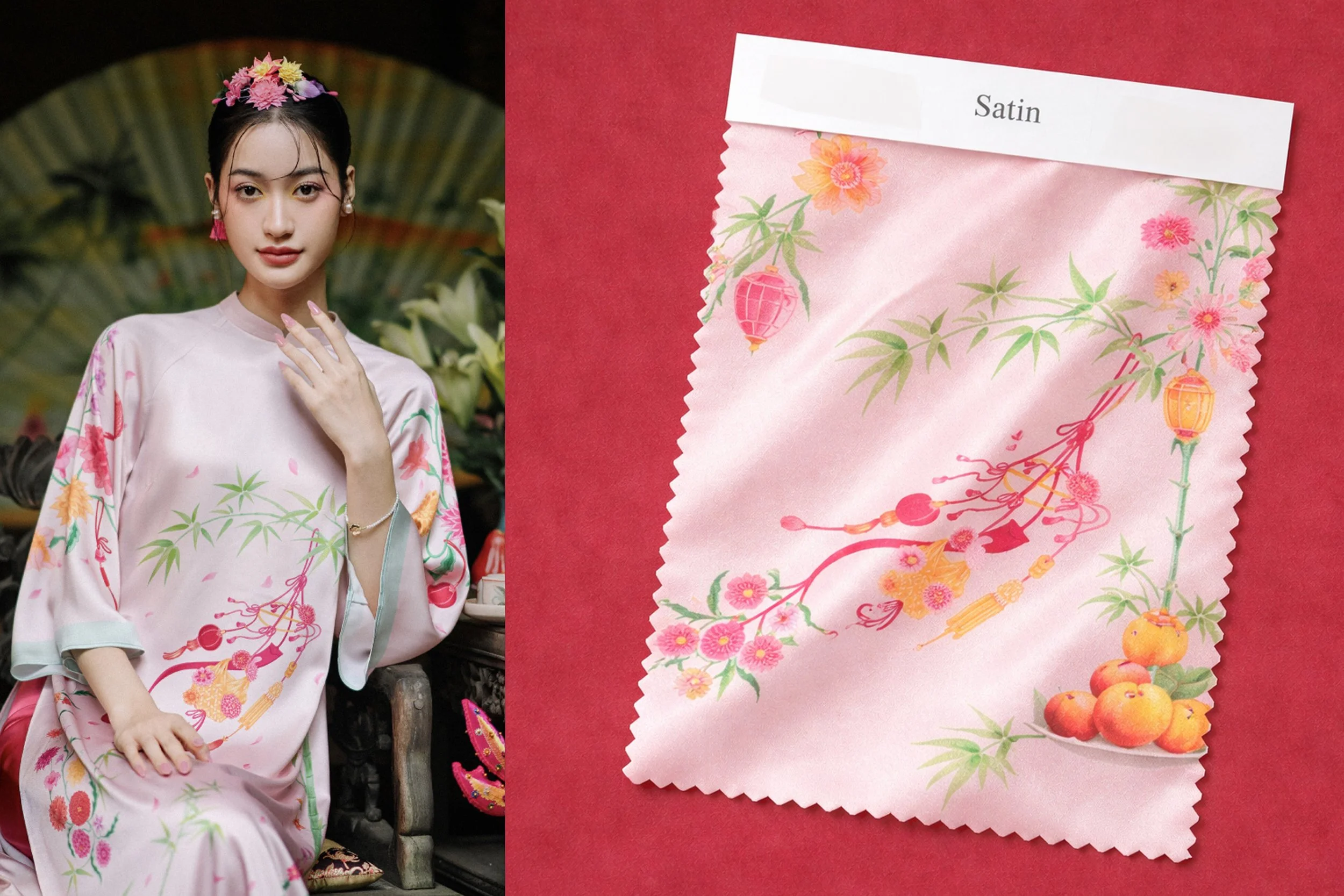 Satin offers a glossy surface with a fluid drape that catches the light beautifully. It creates a polished, glamorous look while still maintaining the elegant structure of the áo dài.
